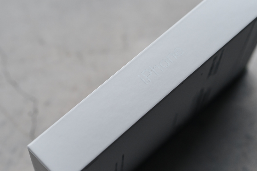 写真では判別できませんが、箱はエンボス加工が施されています。本体、バンプ部分、カメラと細かく段差ができています。