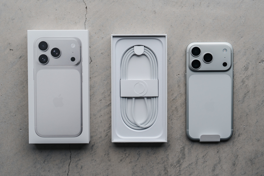 本体以外はUSB-Cケーブルのみが同梱。17シリーズからe-sim専用になっているため、sim用のピンもありません。アップルのシールもなし。