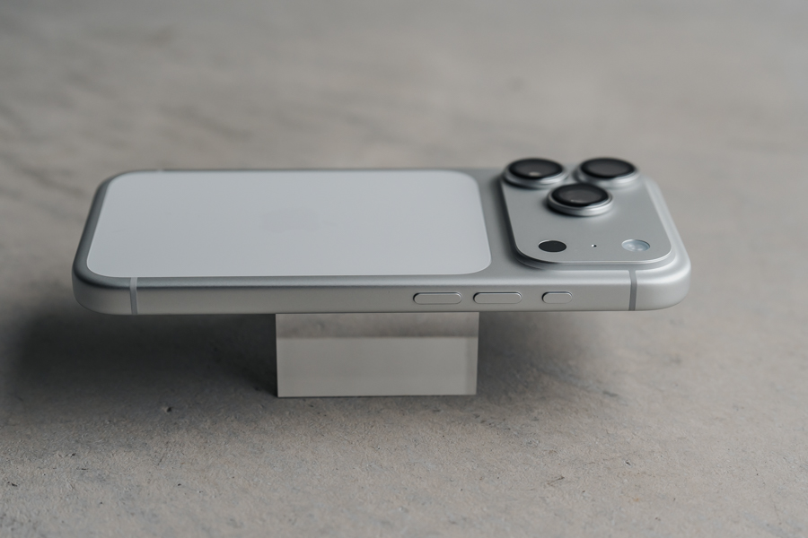 左側面はアクションボタンと音量ボタン。